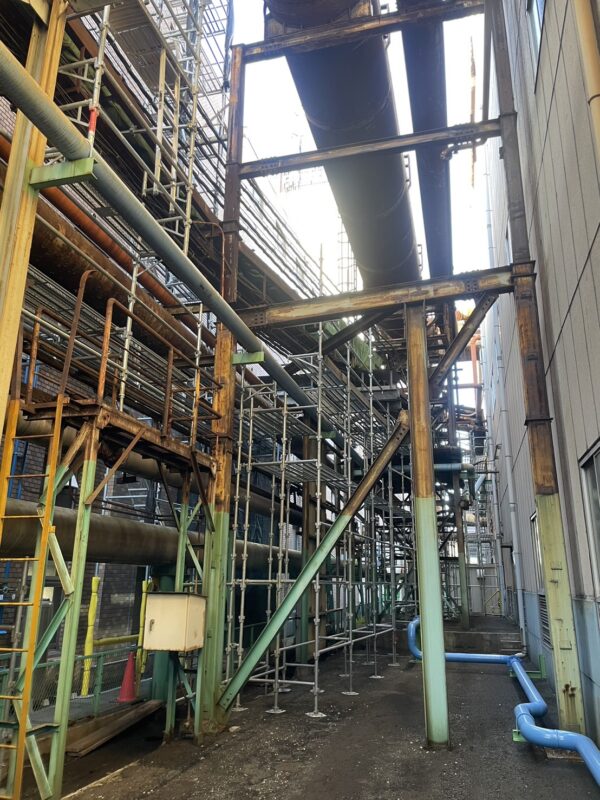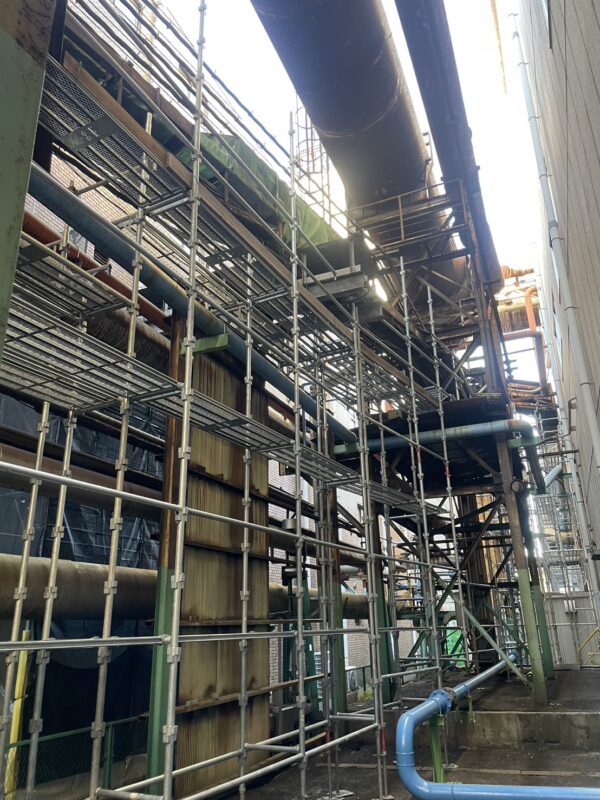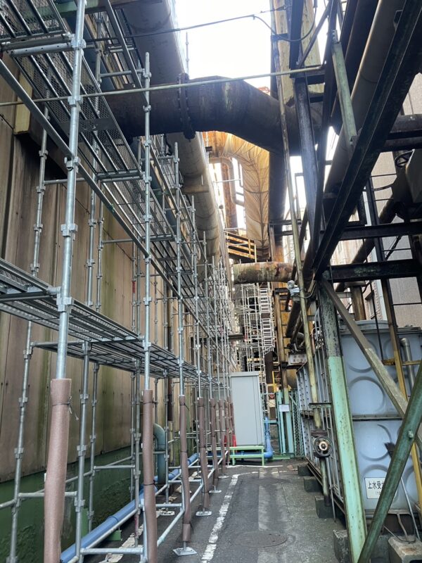 一昨年12月に大阪府某所の工場にて、クサビ式足場の組立て工事を行いました。