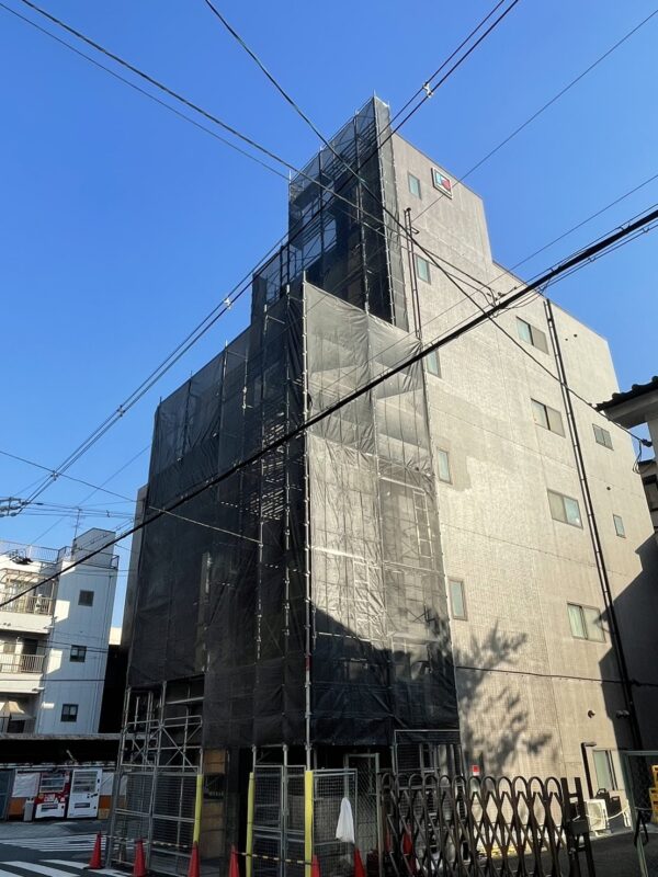 昨年12月に大阪府某所の低層ビルにて、クサビ式足場の組立て工事を行いました。